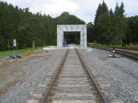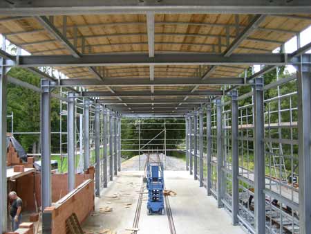 | 26. August 2006: Die Halle ist im Rohbau errichtet. Die Gleisbauarbeiten sind abgeschlossen. | ||
