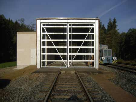 | 6. Oktober 2006: Bis auf den Einbau der Hallentore, der Montage von Fenster und Ein-gangstür im Nebengebäude sowie kleinerer Restarbeiten ist die Halle fertiggestellt. Heute fand auch die Abnahme des neuen Gleises sowie der Halle selbst durch den LfB Sachsen statt. Außer den noch zu erledigenden Arbeiten sowie geringfügigen Nachbesserungen am Rangierweg gab es keine Beanstandungen. | ||